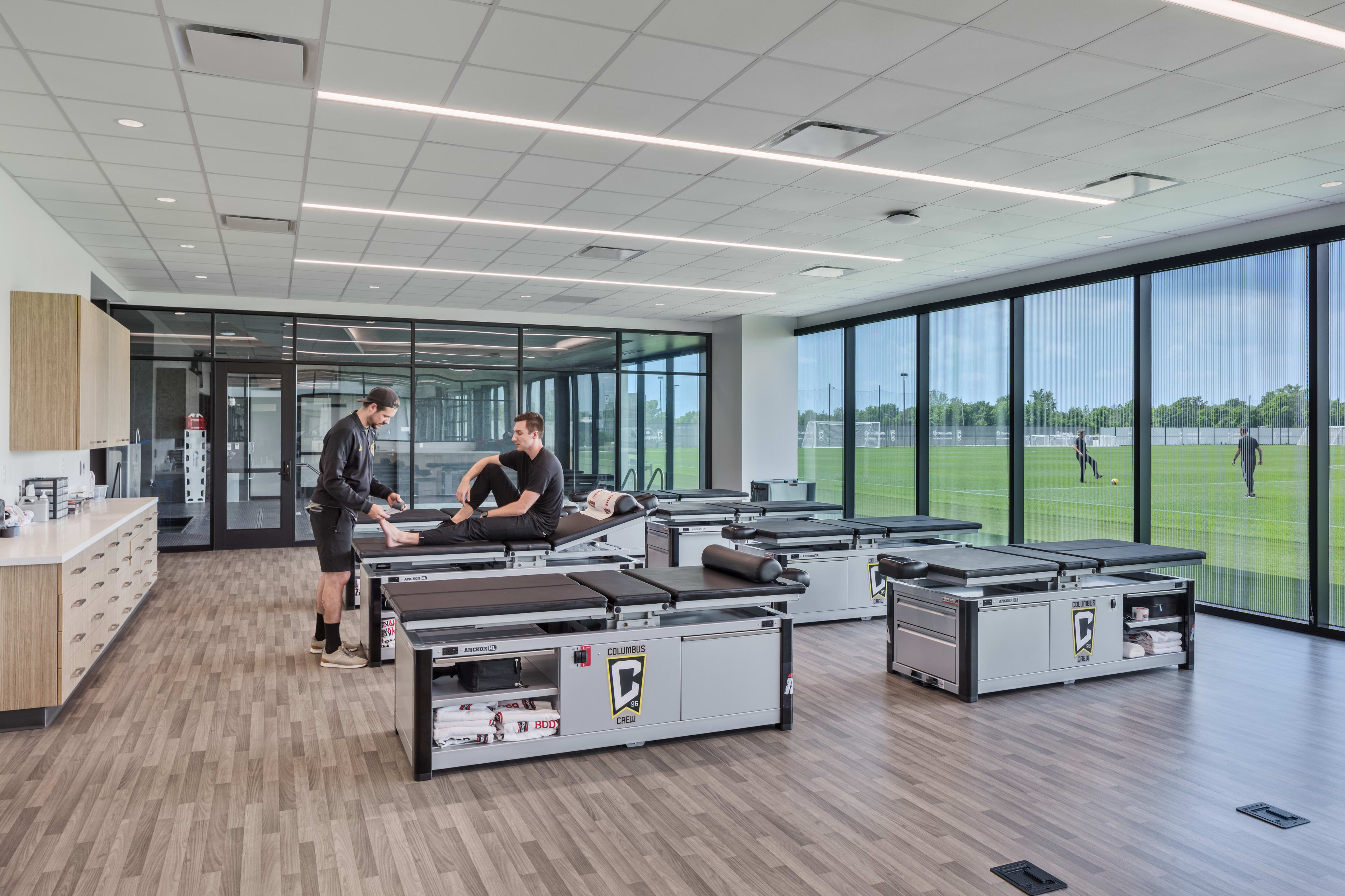 The center is located on the team’s existing stadium site of Historic Crew Stadium, (which opened in 1999), and is the only facility that has converted a soccer-specific stadium into a comprehensive training ground experience. The facility provides teams with cutting-edge recovery and hydrotherapy spaces, gym, theater film room, locker rooms, laundry facilities, boot room, player's parking lot and media/conference spaces.