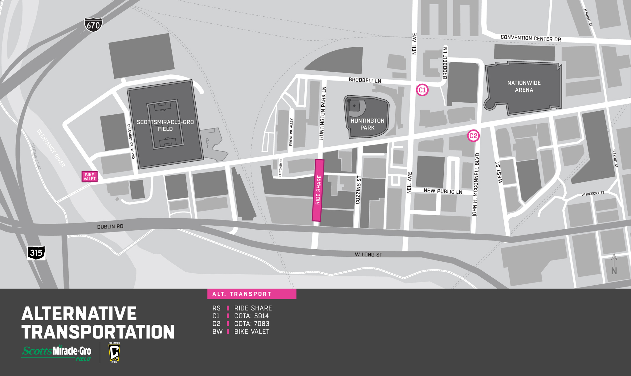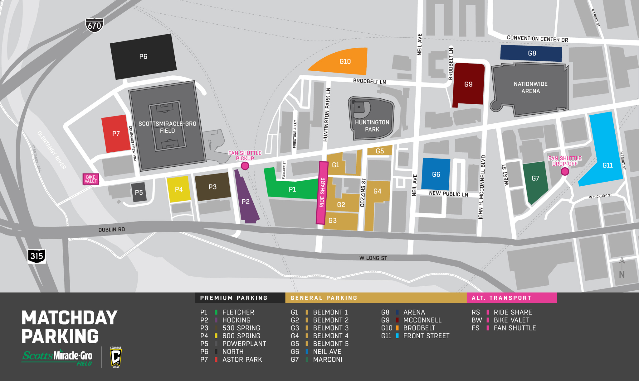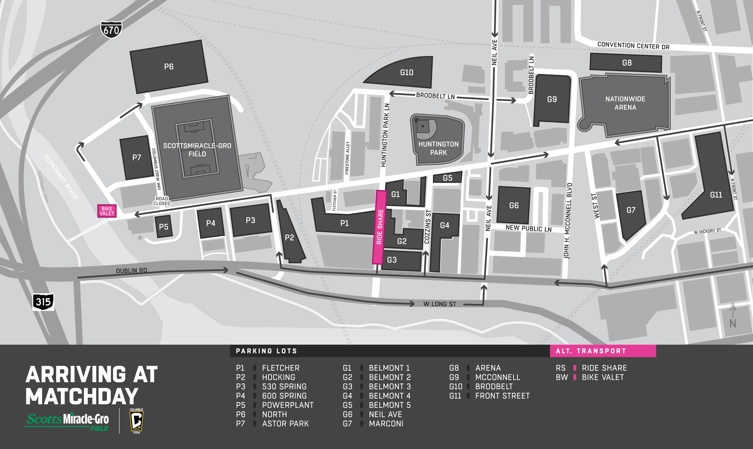 Franklinton Cycle Works will be offering free bike valet service located east of the pedestrian bridge, just west of ScottsMiracle-Gro. Valet service begins at four (4) hours prior to kickoff on matchday.
